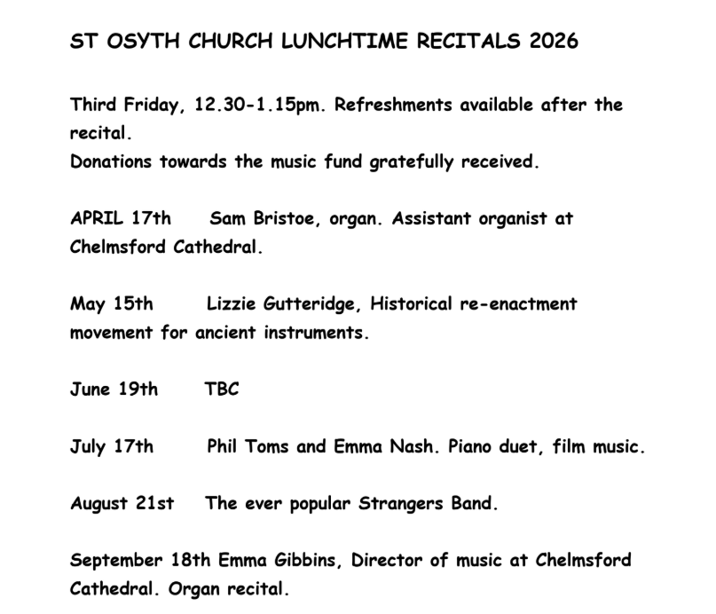 At St Osyth Church (one of the parishes in our Priory Parishes group), there will be a series of concerts over the course of the summer.